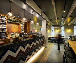 The Picton is a space for both lecturers and students to come together in the heart of Penrhyn Road campus at Kingston University. Appealing to both demographics, we have designed an inviting interior, drawing inspiration from the high street with industrial touches through furniture, wallpaper and mood lighting. We also designed and installed the kitchen to suit the university’s food offer of traditional snacks and sharing platters.