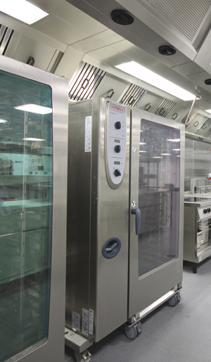 Maximum flexibility within the areas was essential. We provided three working kitchens, a network of interlocking coldrooms, a walk-in blast chiller, self-cooking centres and remote viewing facilities to support the varying hospitality requirements. With high volumes of fresh produce prepared on-site, effective storage and preparation was key.